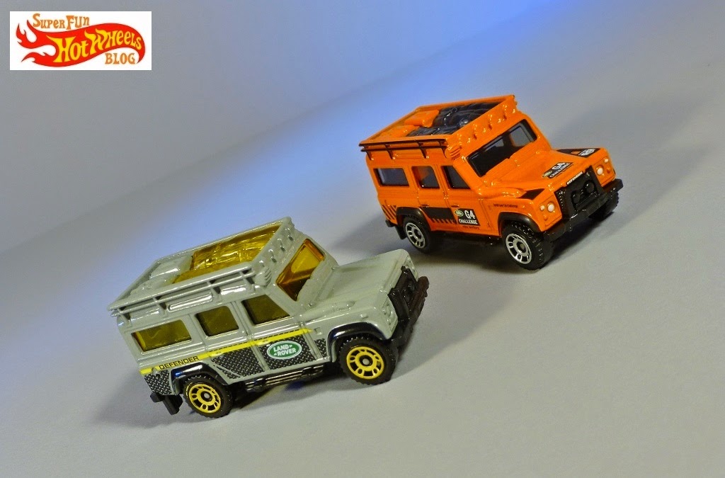Grey Land Rover Defender 110 from the Matchbox Outdoor Sights 5-pack with the orange 2013 60th Anniversary Commemorative Land Rover...